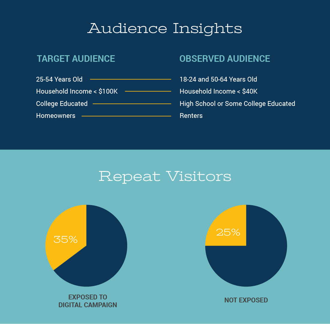 Our approach resulted in a 2% traffic lift among the target audience at partner locations, which amounted to just over 35,000 incremental visitors who could be directly linked to campaign exposure, as well as a significant increase in repeat visitors.