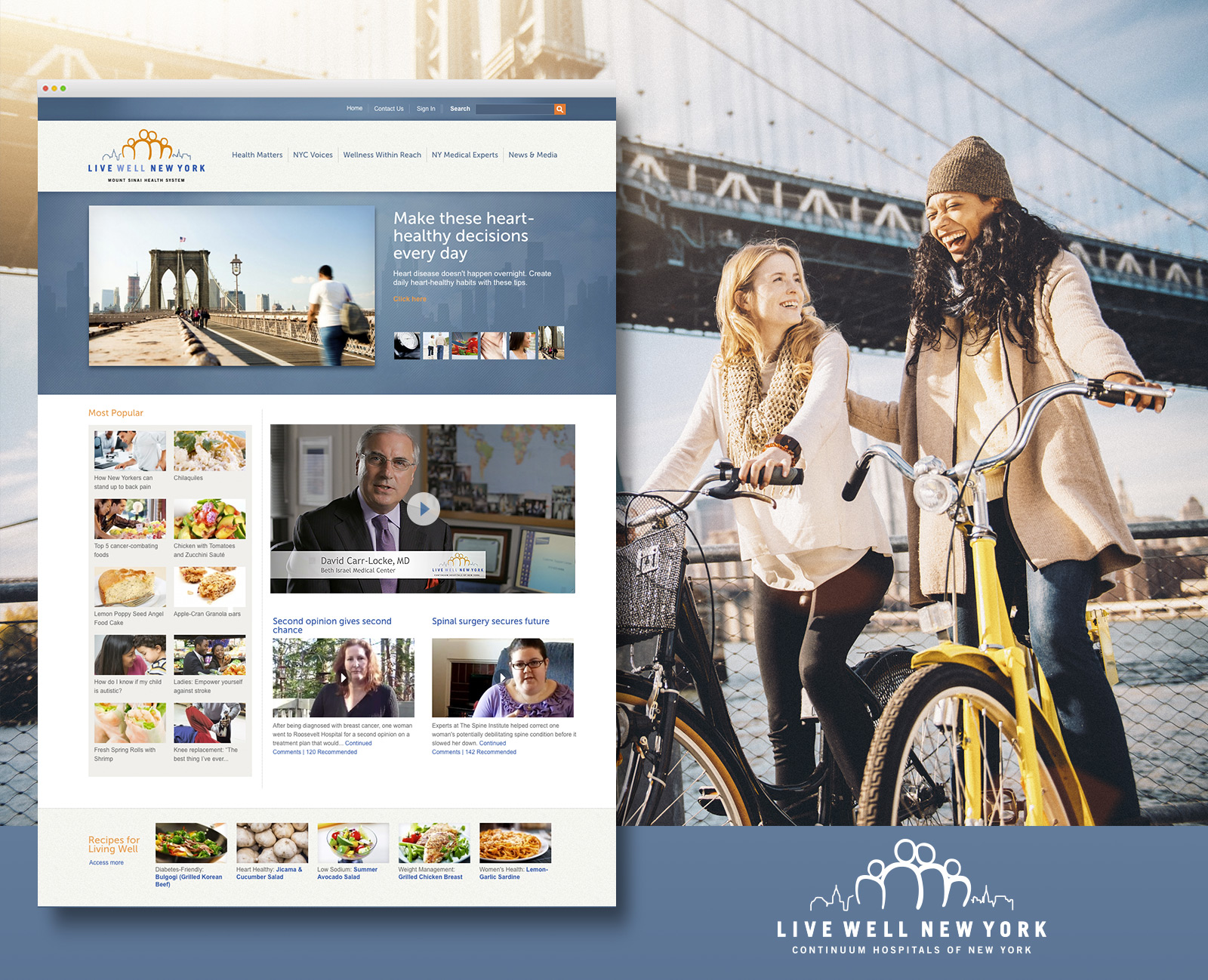 Using physicians as topic experts, real stories from patients and interactive tools to connect consumers with the hospital system’s programs, we built an online community that is authentic as it is engaging. Curated content and localized visuals helped create a multimedia experience that is tailored to the unique experiences of residents of the New York metropolitan area. On average, visitors to the Live Well New York website stayed on page for more than 4 minutes, with a noticeable appreciation in duration for a variety of practical topics, such as “Is it safe to conceive after age 40?” and “How will I know if I have kidney stones?”
